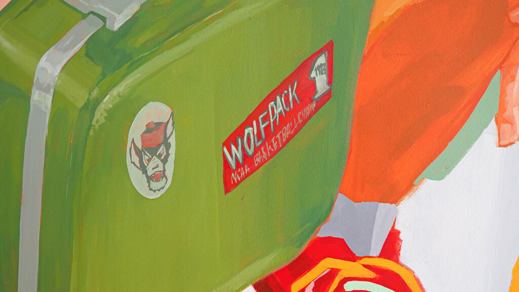 That meant weaving in small details and symbolic elements that invite closer inspection, like the vintage suitcase featuring a 1983 Wolfpack championship bumper sticker. “That kind of forces the viewer to think critically about the work,” he said, “and engage with it in a deeper way.”